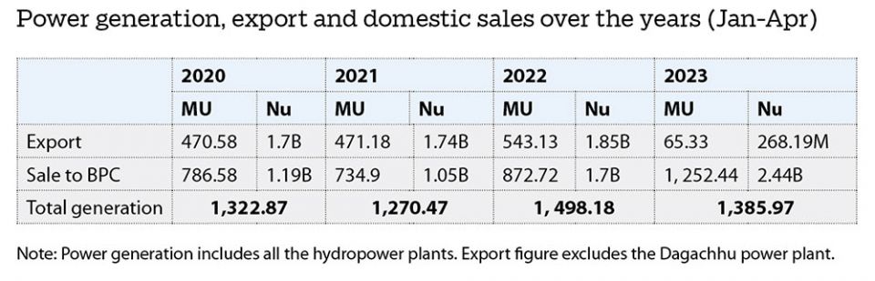 In an earlier interview, Dasho Chhewang Rinzin said that an increase in domestic consumption affects overall revenues since the domestic tariff generation is lower than the export tariff.