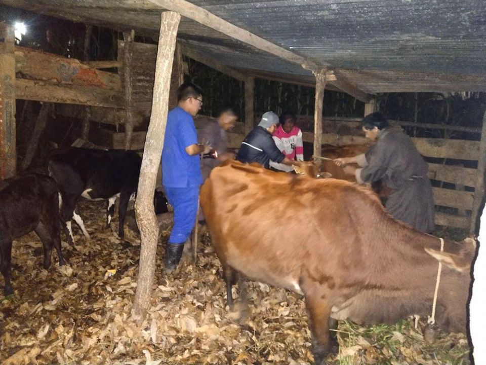 Cattle being vaccinated in Lingmukha, in Punakha
