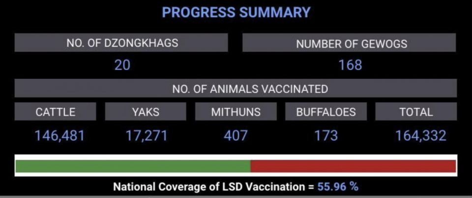 The vaccination coverage is 55.96 percent. Trashigang has the highest coverage followed by Wangdue.