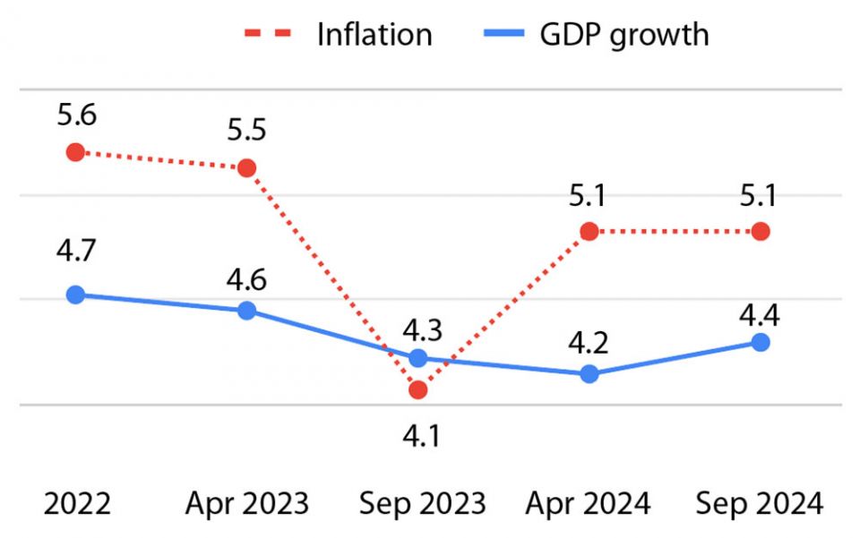 The latest Asian Development Outlook from the bank indicates a downward adjustment in Bhutan’s GDP growth projection, dropping it from the previously estimated 4.6 percent to a new projection of 4.3 percent for this year.